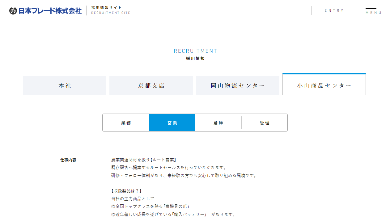 小山商品センター 営業部 求人募集終了のお知らせ。
